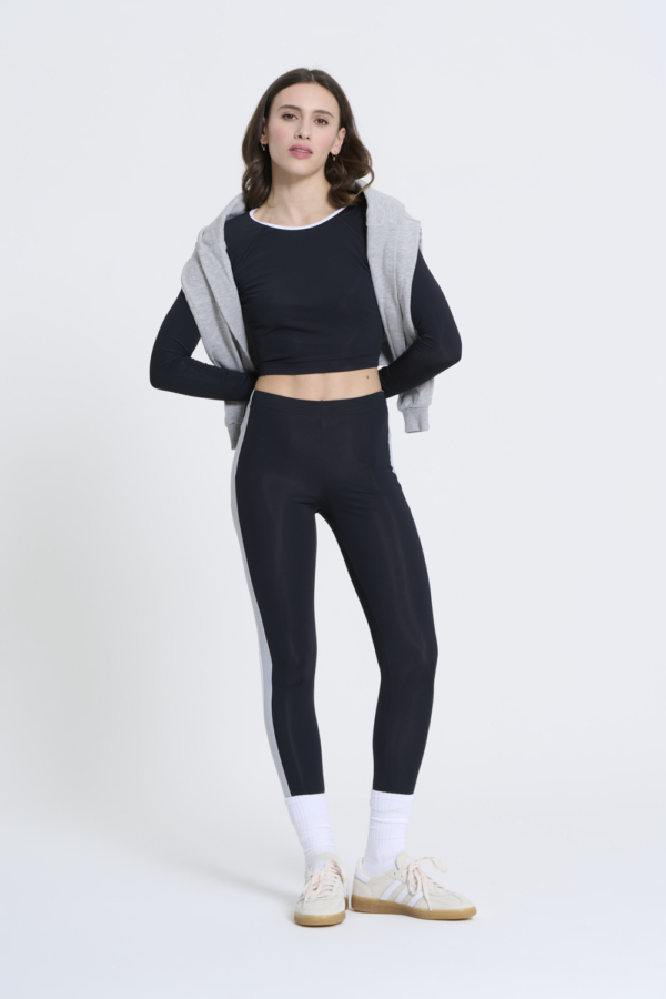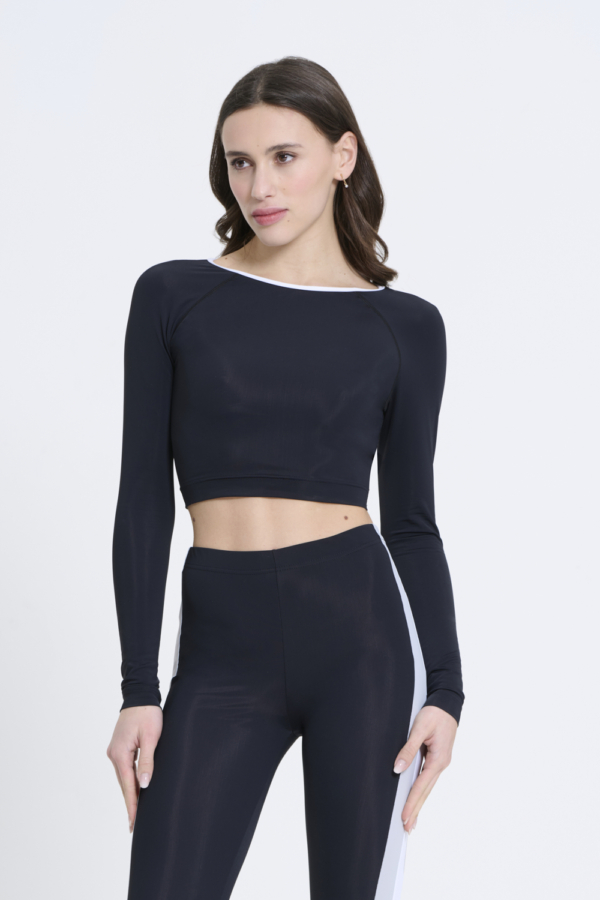 Top in Lycra a maniche lunghe, con un elegante design a schiena scoperta impreziosito da fasce colorate, che aggiungono un tocco dinamico e moderno. Realizzato interamente in Italia, questo capo combina stile e praticità, grazie al tessuto elasticizzato che garantisce una vestibilità perfetta e una libertà di movimento ottimale. Ideale per chi cerca un look sofisticato ma funzionale, perfetto sia per attività sportive che per il tempo libero.